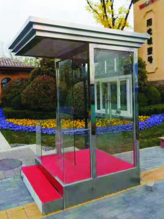 4. 防彈玻璃崗亭的玻璃是由玻璃(或有機玻璃)和優良工程塑料經特殊加工得到的一種復合型材料, 通常是聚碳酸酯纖維層夾在普通玻璃層之中。它具有普通玻璃的外觀和傳送光的行為,對小型武器的射擊提供一些保護。它可以在某種當量的爆炸攻擊下,玻璃不脫離框架,保持完好或非穿透性破壞,是一種高安全性能的特種玻璃。